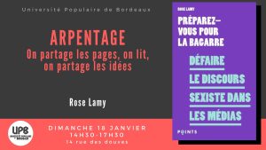 Le dimanche 18 janvier, à 14h30, l’UPB vous invite à arpenter “Préparez-vous pour la bagarre – Défaire le discours sexiste dans les médias”, de Rose Lamy.