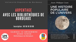 On arpentera le livre de Jean-Philippe Uzan : “Une histoire populaire de l’univers”, dans le cadre du cycle Parlons.