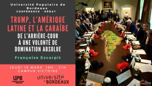 Le jeudi 19 mars à 19h, en amphithéâtre Denucé (faculté de la victoire), l’UPB vous invite à écouter et échanger avec Françoise Escarpit à propos de la politique impérialiste de Trump.